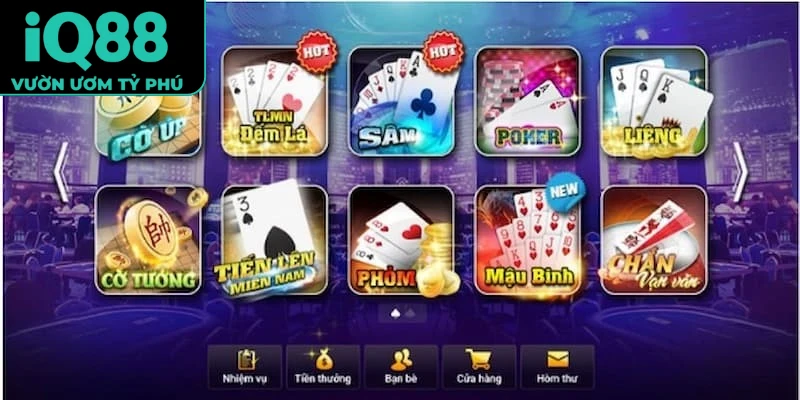 Từ các trò dân gian quen thuộc như Tiến Lên, Phỏm, Mậu Binh cho đến những dòng game quốc tế như Poker hay Baccarat, iQ88 mang đến không gian thi đấu công bằng, kịch tính, không ngừng đổi mới. Đây thực sự là điểm hẹn lý tưởng cho anh em muốn kết hợp giữa thư giãn, thử thách bản thân qua từng ván bài hấp dẫn.